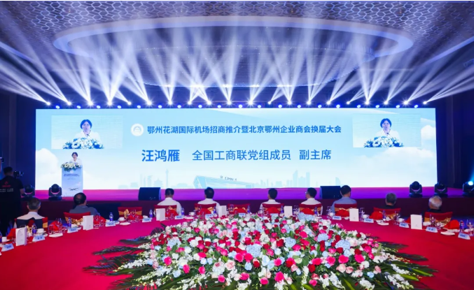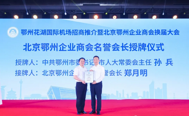 活动中,北京鄂州企业商会换届大会顺利举行,现场进行了授牌仪式,郑月明当选为北京鄂州企业商会名誉会长,龚亮当选为北京鄂州企业商会会长,桂耀华当选为北京鄂州企业商会监事长。湖北国际物流机场有限公司、鄂州市临空经济区分别作招商引资推介,展示交通区位优势、宣传招商引资优惠政策以及投资环境。