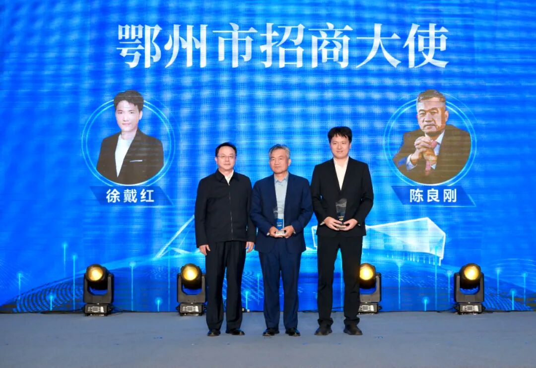 市委书记、市人大常委会主任孙兵为鄂州招商大使陈良刚、徐戴红颁发聘书。